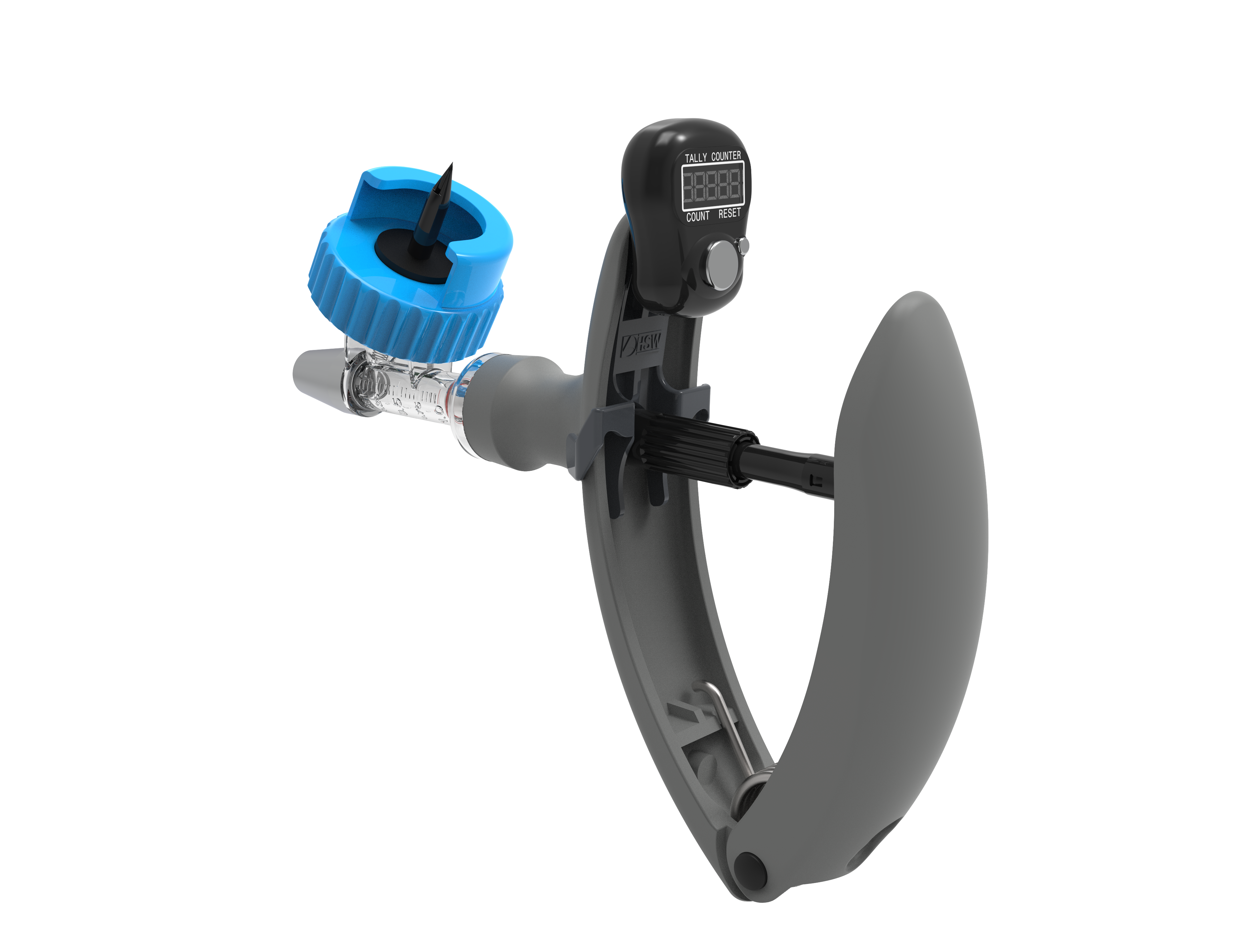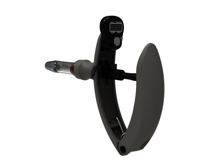 Er zählt automatisch jede vollständig applizierte Dosis und unterstützt eine präzise Chargenzählung sowie eine zuverlässige Dosenkontrolle bei täglichen Routineanwendungen. Die Auslösung erfolgt, sobald der hintere, bewegliche Griff den Zählerknopf berührt. Der HSW DoseTrack erfasst Injektionen zuverlässig und kann per Knopfdruck sofort zurückgesetzt werden – bereit für den nächsten Behandlungszyklus.
